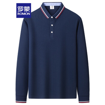 罗蒙长袖t恤男春季新款撞色翻领Polo中青年男士时尚打底T恤衫 3T497602藏青色 170(建议100-120斤)