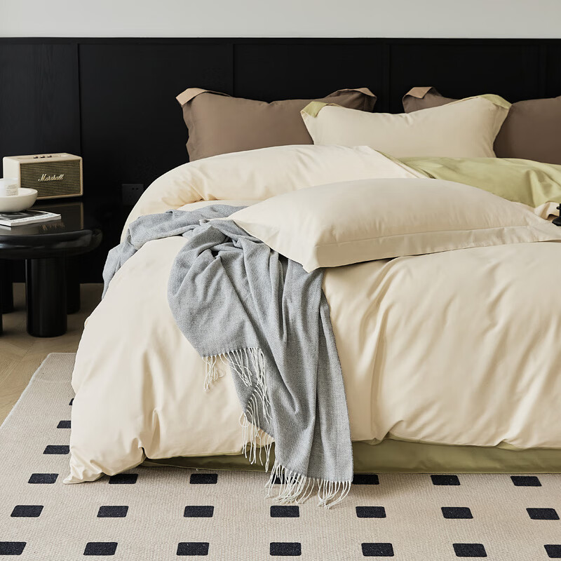 AIDLI 床上四件套60支全棉贡缎新疆长绒棉100%纯棉被套床单酒店套件 香草奶白(磨毛款) 1.5/1.8m床 床单款 (被套200*230cm)
