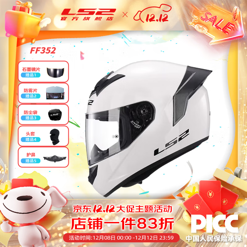 LS2全盔男女摩托车骑士情侣机车头盔四季防雾大尾翼通用FF352 闪光白 3XL(建议61-62头围)
