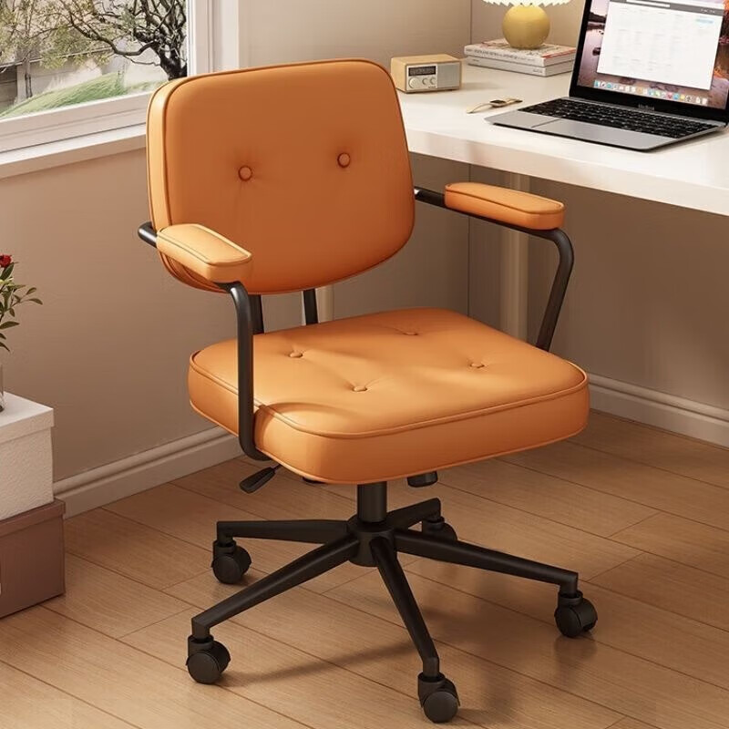 家用简约电脑椅办公扶手转椅 亮橘色