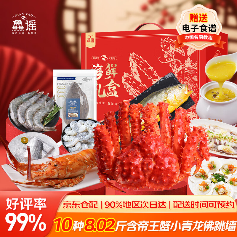 【现货】鱻谣年货海鲜礼盒10种8.02斤帝王蟹小青龙带鱼大黄鱼春节过年送礼大礼包年夜饭