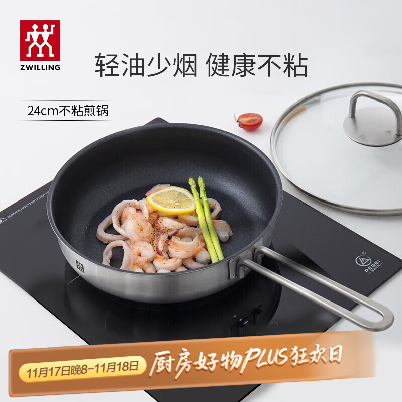 双立人(ZWILLING)不粘锅平底锅煎锅炒菜锅煎蛋锅牛排锅少油烟烹饪锅具Nova Plus 【含盖】不粘煎锅 24cm