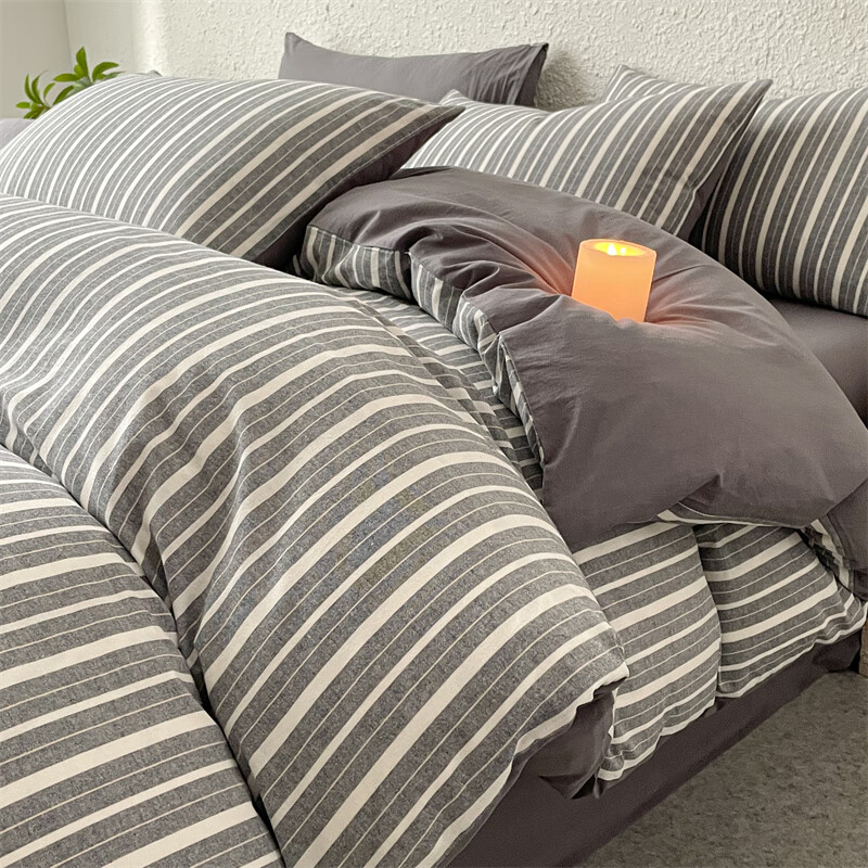 俞兆林(YUZHAOLIN)全棉床上四件套100%色织全棉水洗棉被套床单床笠被罩床品套件 雅诗-灰 1.5/1.8m 床单款 被套200*230cm