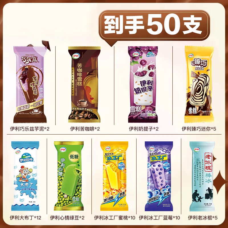 伊利【50支组合】巧乐兹芋泥糯兹兹伊利奶提子大布丁玉米棒冰工厂雪糕 50支组合(详见图)