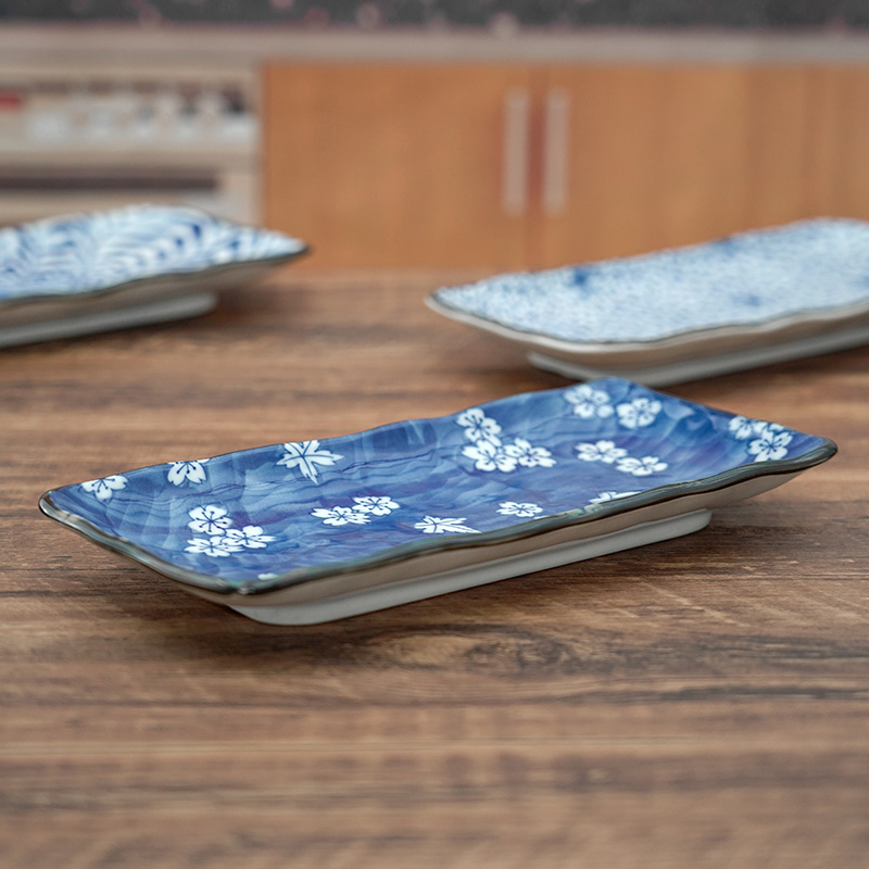 美浓烧 日本进口网红釉下彩新款日本餐具瓷器方形早餐复古好看盘子 小纹春秋【28.3*13.5*3.cm】