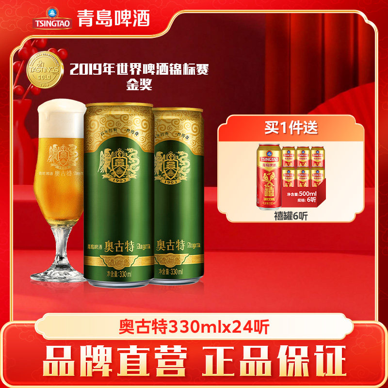青岛啤酒精酿奥古特330ml*24听大麦酿造高端啤酒整箱包邮
