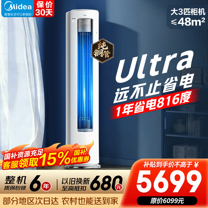 美的(Midea)空调 酷省电Ultra 新一级能效 AI酷省电技术 客厅立式柜机变频冷暖家用节能静音以旧换新 酷省电Ultra 3匹