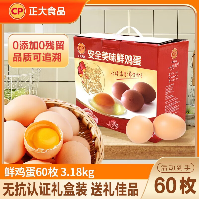 正大 安全美味鲜鸡蛋 家庭礼盒 早餐食材 礼盒装 源头直发 60枚 净重3.18kg