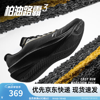 安踏柏油路霸3丨男鞋氮科技专业竞训训练鞋透气耐磨跑步鞋子男运动鞋 黑/金属金-3 42 (男8.5)