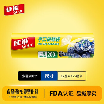 佳能(Glad)双重加厚平口保鲜袋家用食品级包装密封塑料袋厨房冰箱收纳袋 小号200个
