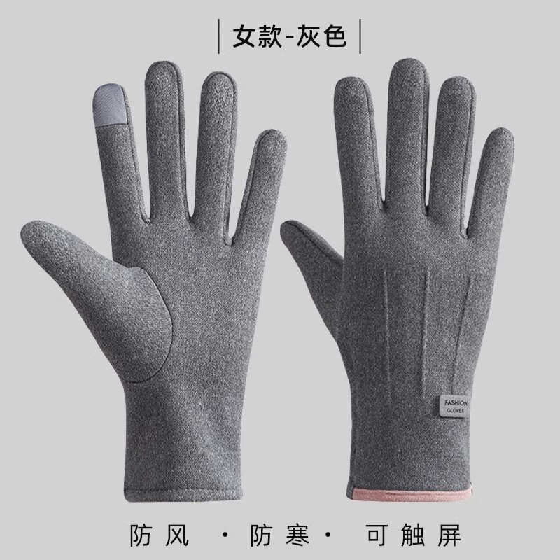 卫墨墨手套女士冬季2025年新款骑车学生防风保暖冬天加绒防寒触屏电动车 女款灰色 L