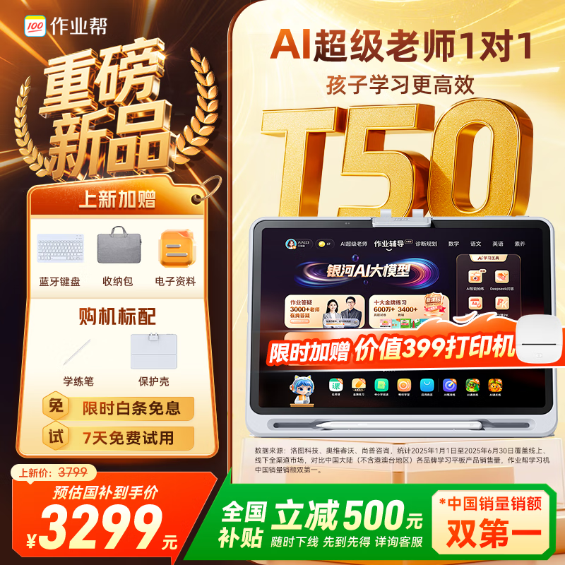 作业帮学习机T50 AI超级老师1对1教学自研名师大招课平板电脑小学到高中学练一体家教学练机13.2''8+256G