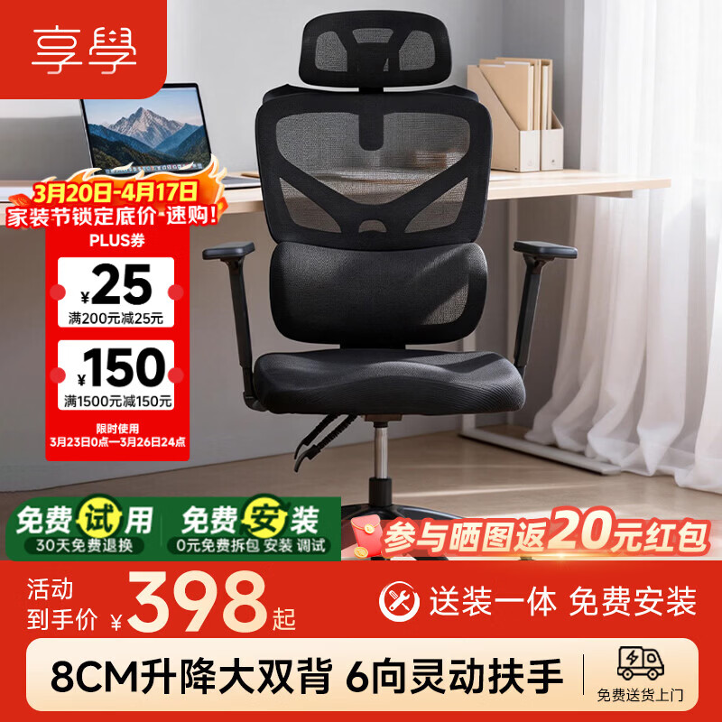 享学电脑椅人体工学椅电竞椅办公椅久坐撑腰护脊自适应腰托 LS-1黑色