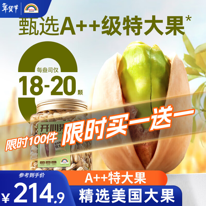 天虹牌(Rainbow)2斤开心果原色无漂白大颗粒美国坚果炒货干果孕妇零食品团购送礼 【到手2罐】618gA++级美国开心果