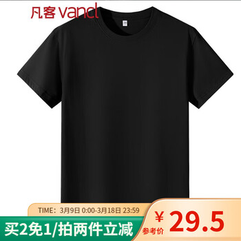 凡客诚品(VANCL)尺码偏小请拍大2码,时尚休闲纯棉素色T恤衫情侣款 黑色 3XL