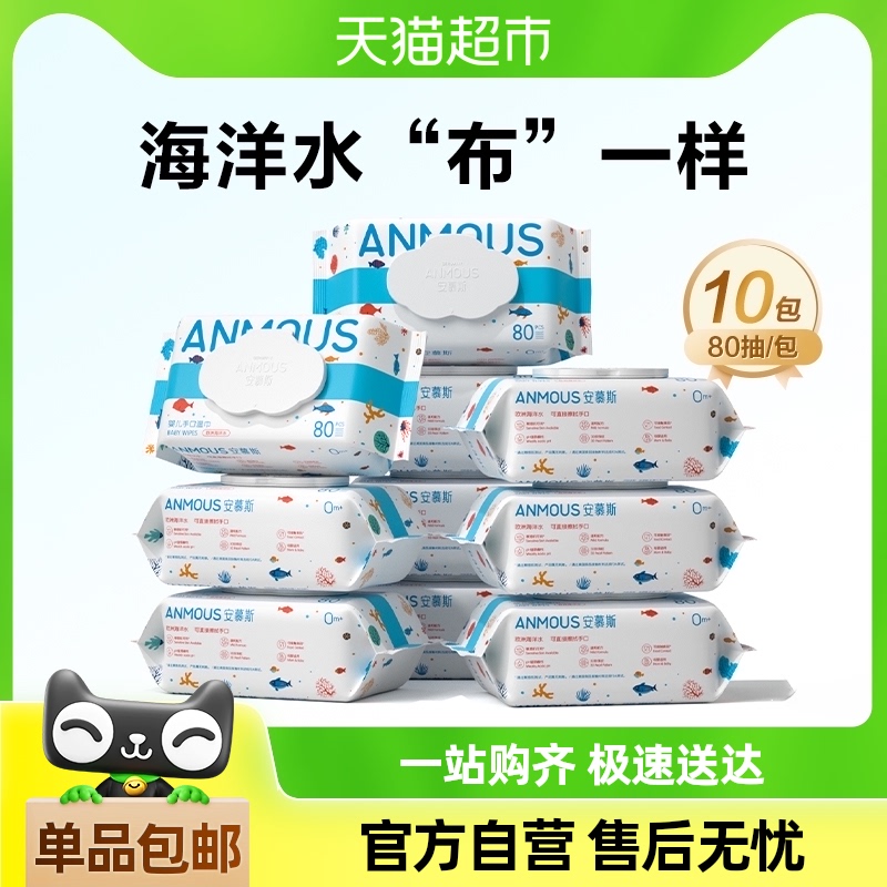 【下拉详情享优惠】安慕斯海洋水婴儿手口湿巾湿纸巾10包非棉柔巾