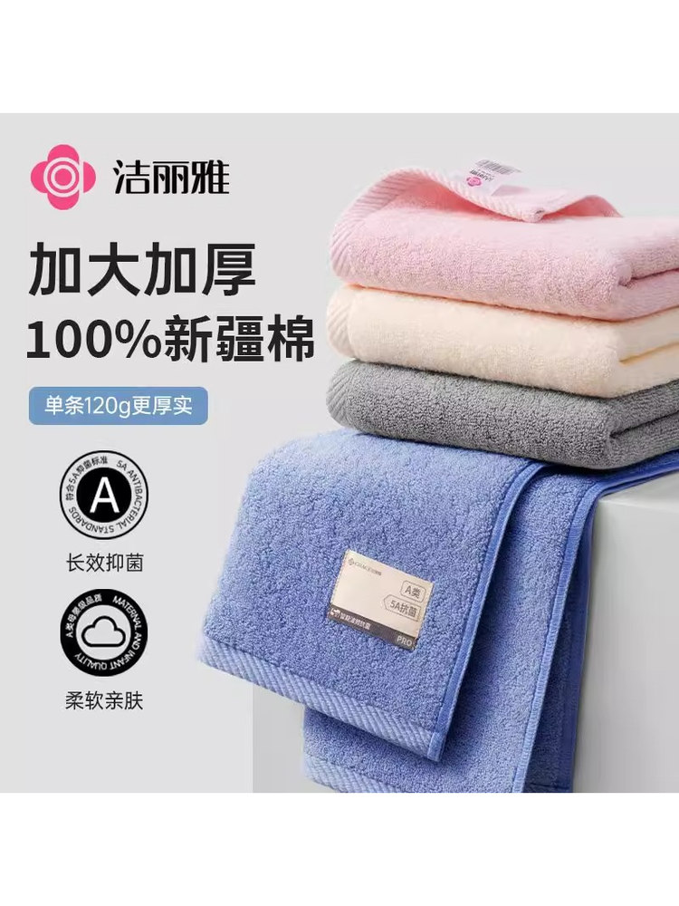 洁丽雅纯棉毛巾5A抑菌加厚吸水成人家用柔软亲肤不易毛不掉絮面巾