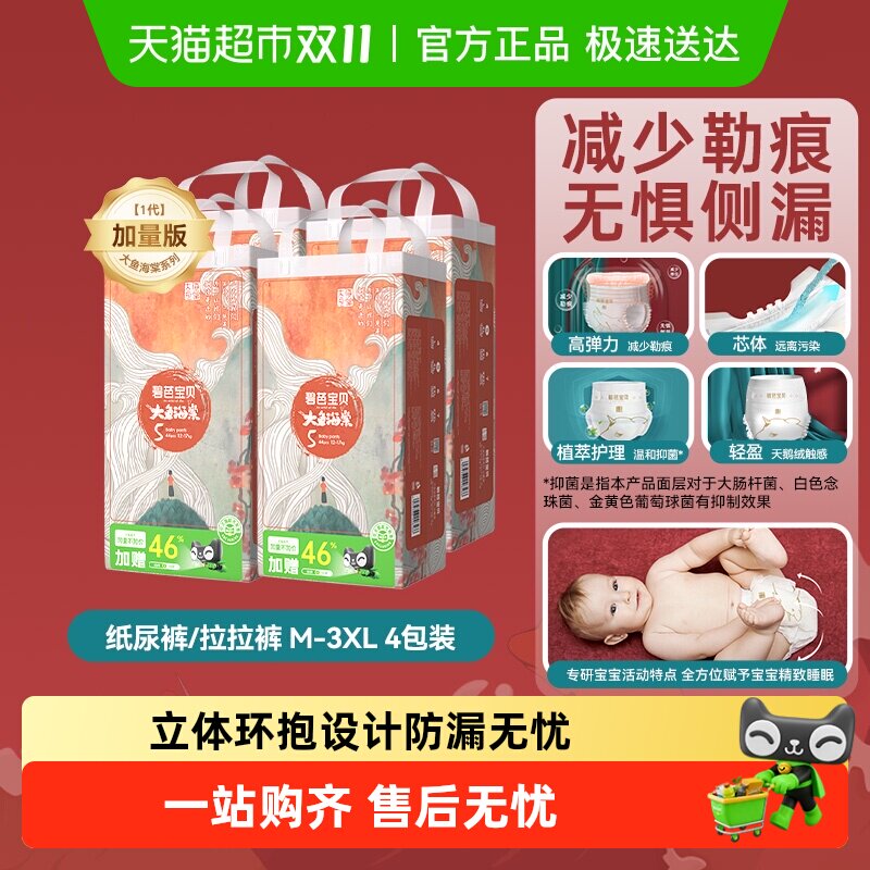 碧芭宝贝大鱼海棠系列裤型婴儿纸尿裤拉拉裤加量装尺码任选