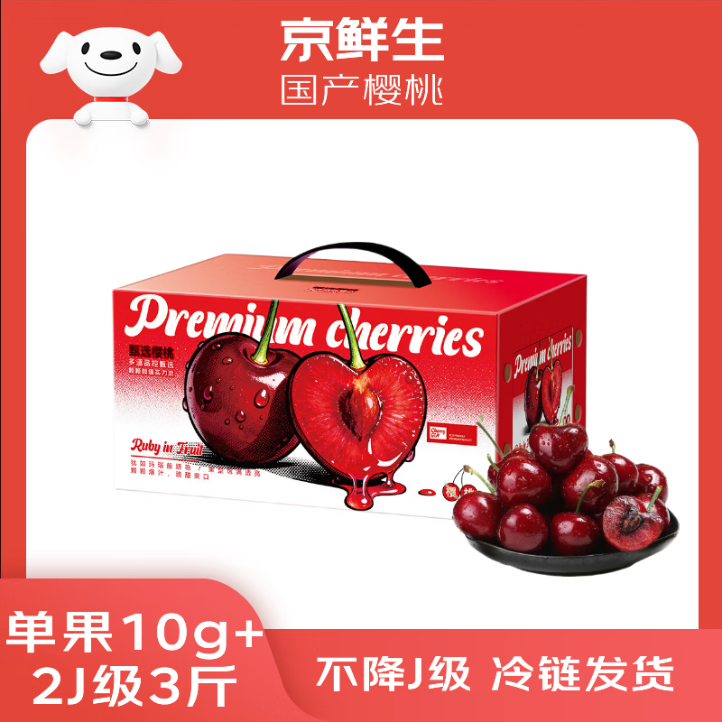 京鲜生 大连美早樱桃 车厘子 2J级 3斤礼盒装 单果10g+ 生鲜水果