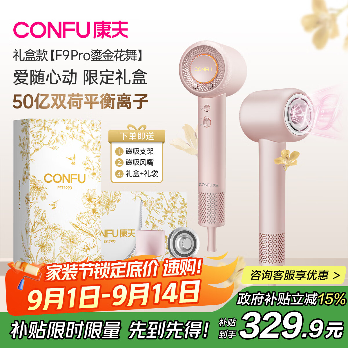 康夫(CONFU)高速电吹风机家用大功率大风力50亿等离子速干护发除螨教师节生日礼物吹风筒F9Pro粉礼盒