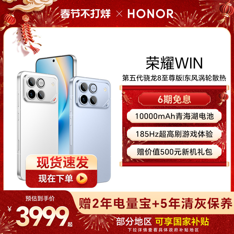 【新品上市】HONOR/荣耀WIN第五代骁龙8至尊版10000mAh青海湖电池185Hz超高刷游戏手机 官方旗舰店 正品国补
