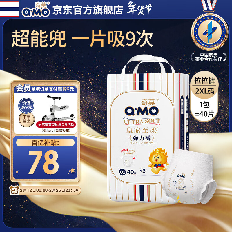 奇莫Q-MO皇家至柔拉拉裤XXL40片(15kg以上)加大码弹力裤尿不湿超薄