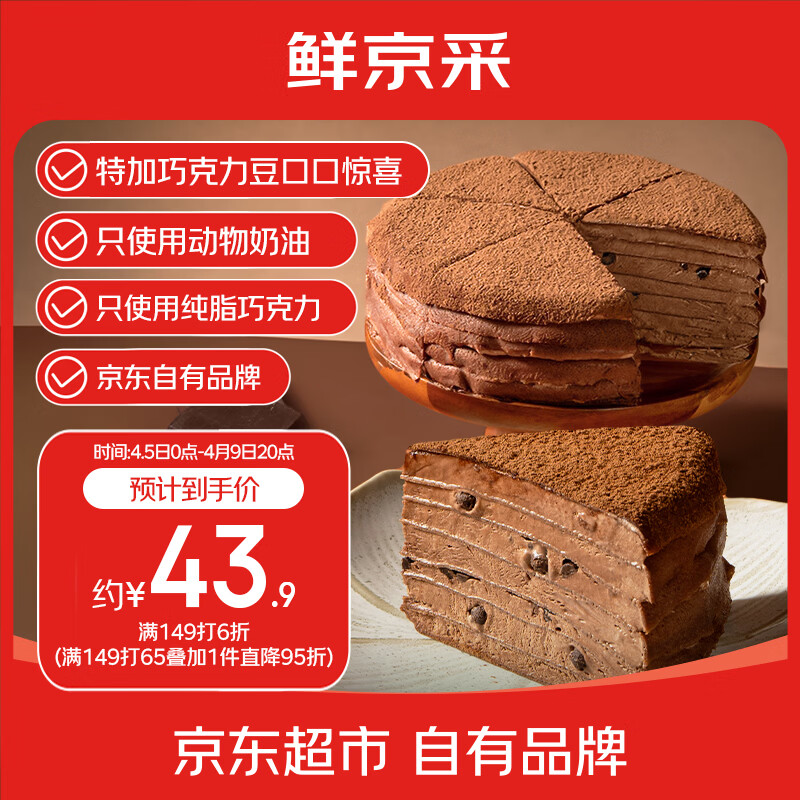 鲜京采纯脂巧克力千层蛋糕400g/6寸 动物奶油雪糕糕点零食甜品中秋聚会