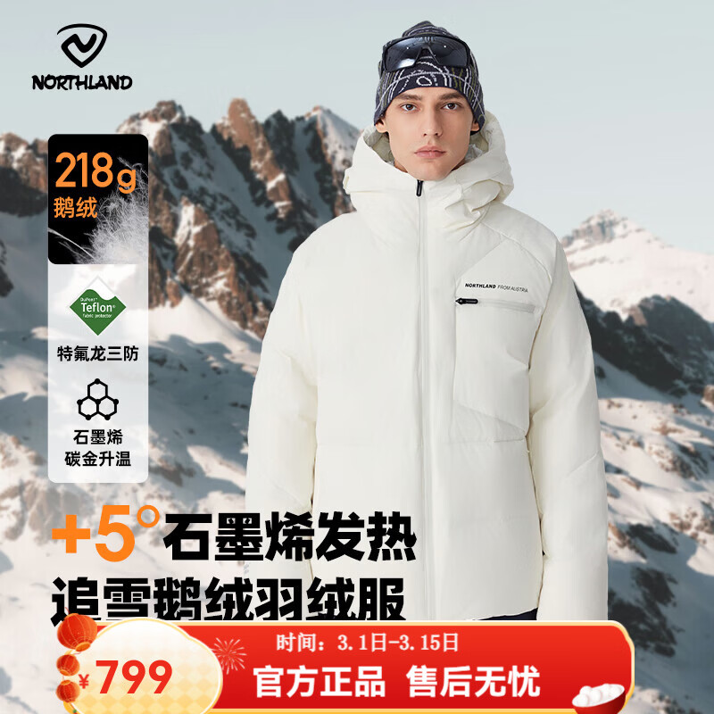 诺诗兰(NORTHLAND)秋冬户外男女羽绒服防寒保暖可升温三防高蓬鹅绒羽绒外套面包服 极地白色 4XL (190) 180-220斤 卡码拍小