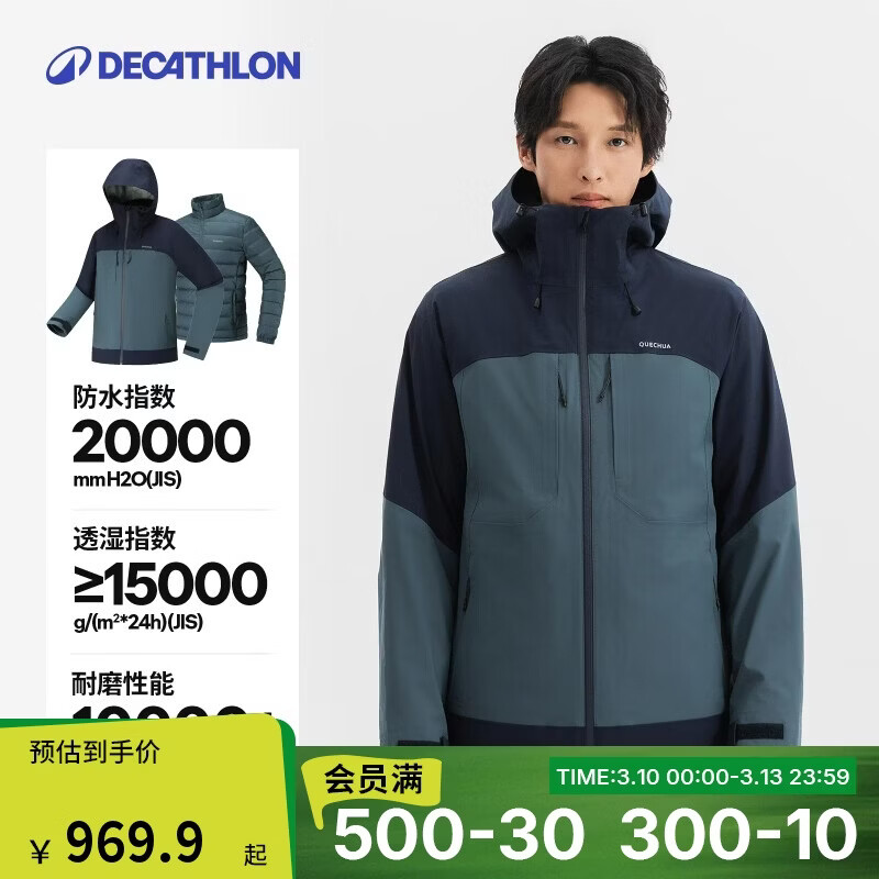 迪卡侬男士冬季三合一保暖夹克户外徒步外套-5263854