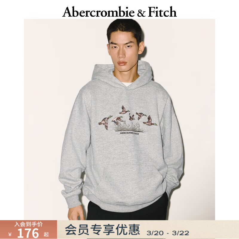 Abercrombie & Fitch美式时尚潮流百搭舒适抓绒连帽卫衣上衣25秋冬男装122-5669 灰色 M (180/100A)