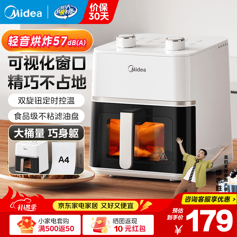 ÃÀµÄ£¨Midea£©¿ÕÆøÕ¨¹øÃâ·Ãæ 5.3LAIÖÇÄÜÅëâ¿ÕôÆûÄÛÕ¨ ¿ÕÆøÕ¨¹øÕô¿¾Ò»Ìå ¿ÉÊÓ´óÊÓ´° ¼ÒÓôóÈÝÁ¿ MF-KZC5388