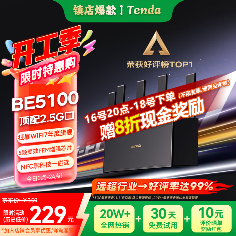 TendaÌÚ´ï·ÓÉÆ÷WiFi7¡¾ÔÆÏöBE5100¡¿Ç§Õ×´©Ç½ÍõÐźŷŴóÆ÷ÔöÇ¿ÎÞÏß³¬Ç¿2.5gÍø¿Ú¼ÒÓõ羺Á¢Ê½BE6L Pro