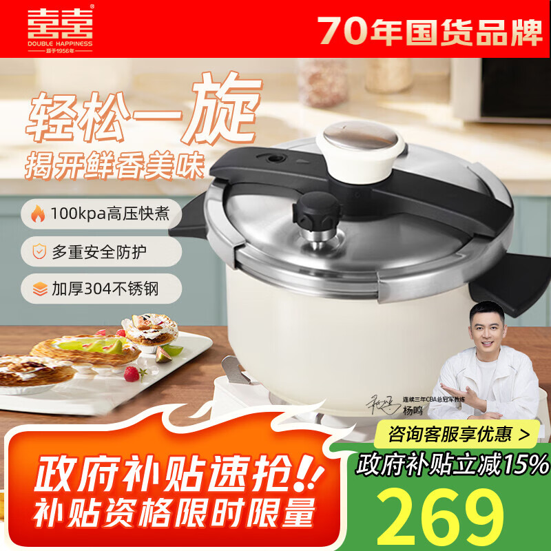 ˫ϲ¸ßѹ¹ø304²»Ðâ¸ÖÈ¼Æøµç´Å¯ͨÓ÷À±¬Ñ¹Á¦¹øµ¥ÊÖ¿ªºÏ22cm/6LÕäÖé°×