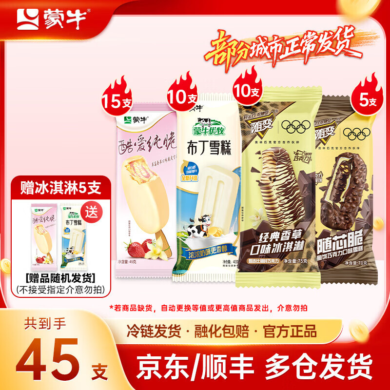 蒙牛小布丁酷爱草莓随变经典香草随芯脆脆饼+巧克力冰淇淋雪糕 组合装共45支