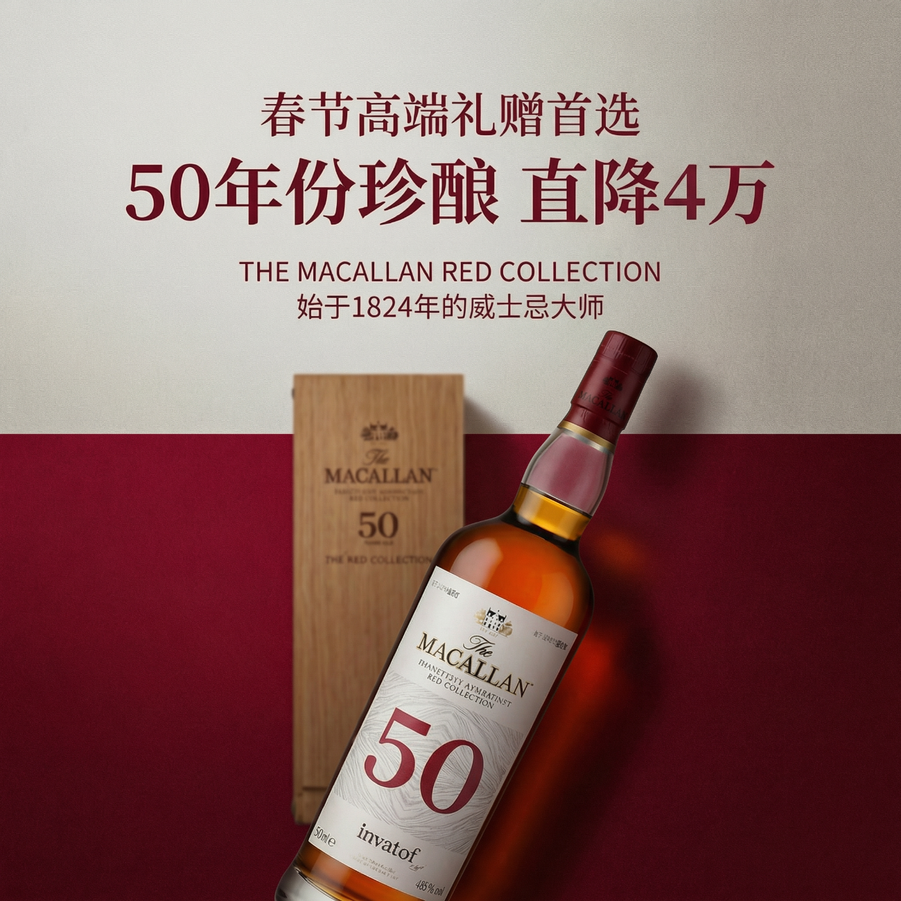 麦卡伦(MACALLAN)耀红珍藏系列50年礼盒装 700ml 单一麦芽威士忌
