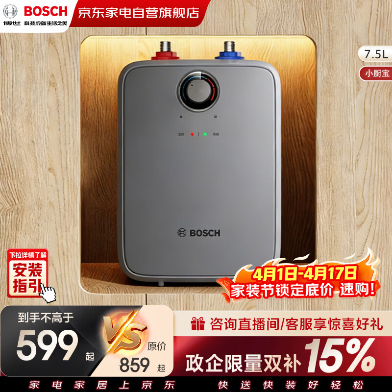 博世进口品质节能省电一级能效7.5L迷你电热水器速热恒温增容储水式小厨宝 TR 3120 T 7.5-3 SGMH