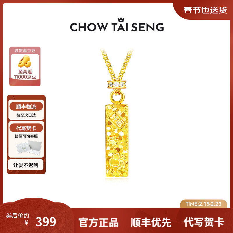 周大生四方来财项链S925碎金长方牌吊坠轻奢锁骨链情人节礼物送女友 四方来财项链