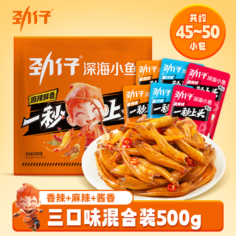 劲仔深海小鱼仔 游玩踏青 送礼小鱼干 混合味 500g(约45-50小包)