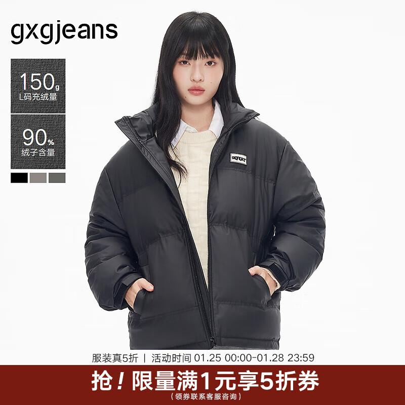 gxg.jeans男装 2024年冬季短款保暖立领羽绒服 3色可选 黑色 2XL (185)