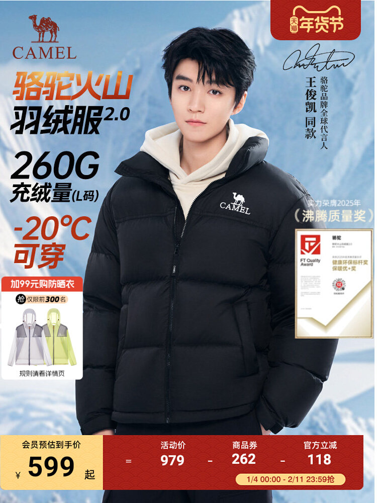 王俊凯同款骆驼火山羽绒服男冬季加厚保暖防寒面包服男装短款外套