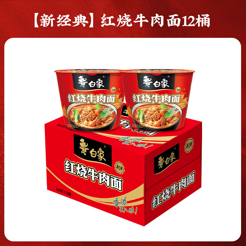白象方便面精炖面多种口味12桶经典泡面整箱速食 桶装整箱 新经典红烧牛肉12桶整箱