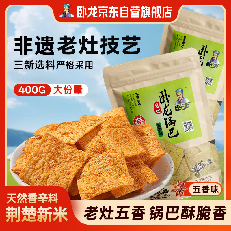 卧龙手工大米锅巴老灶锅巴襄阳特产休闲零食薯片膨化五香味 400g/袋