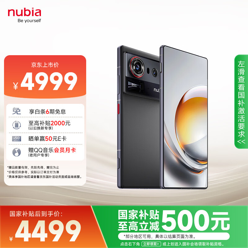 努比亚(nubia)Z80 Ultra 真全面屏 第五代骁龙8至尊版 7200mAh电池 12GB+512GB魅影黑 5G游戏AI手机 国家补贴