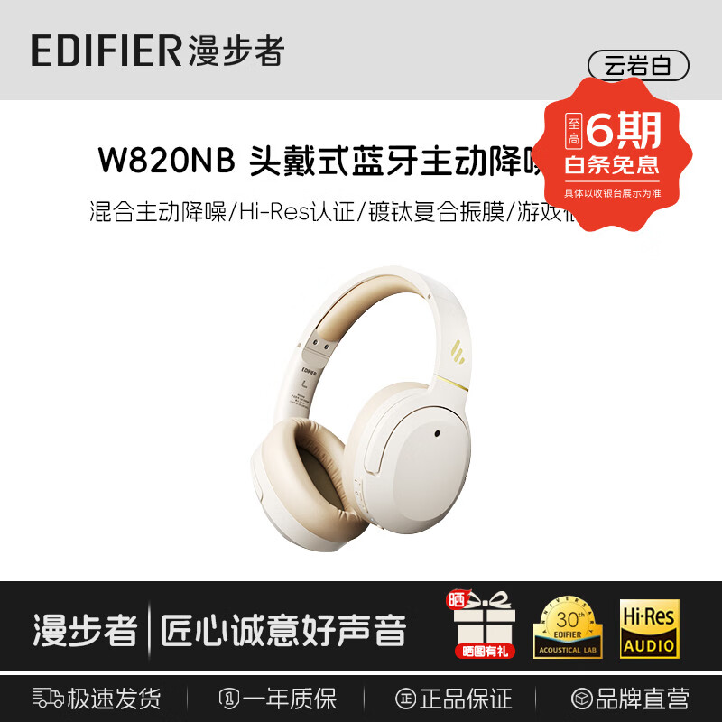 漫步者W820NB【金标版】头戴式-49深度降噪蓝牙耳机包无线83小时长续航游戏网课LDAC解码耳麦耳塞耳机 【Hi-Res Audio】w820nb经典版云岩白