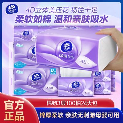维达抽纸棉韧压花立体24包XS码3层100抽餐厅纸面巾纸巾家用整箱
