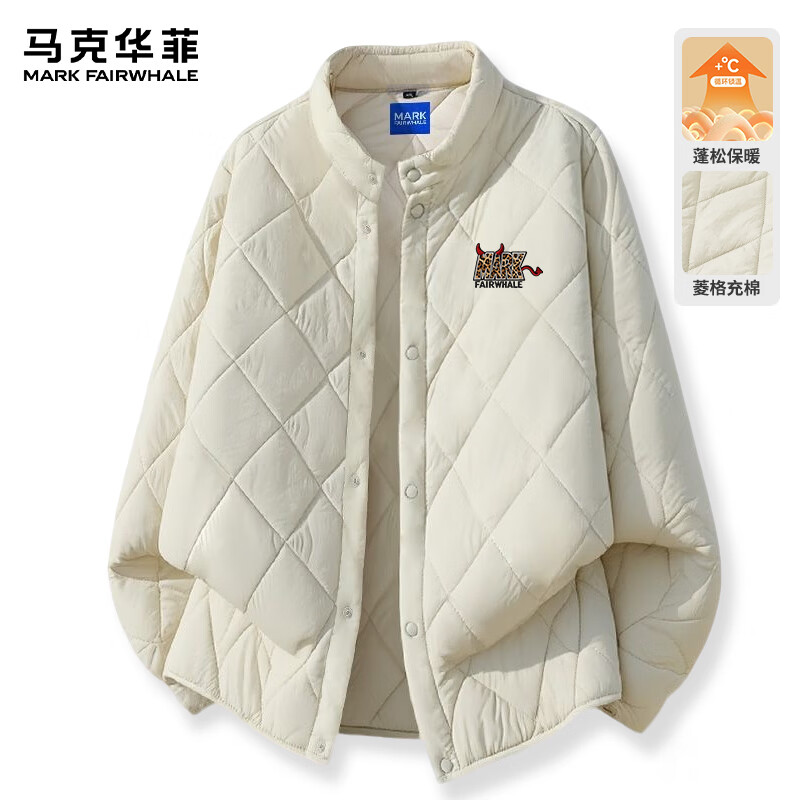 马克华菲(MARK FAIRWHALE)2025新款菱形格立领棉服男轻盈保暖秋冬宽松舒适简约百搭夹克外套 【立领棉服】-米白#JMK豹纹小恶魔 XL