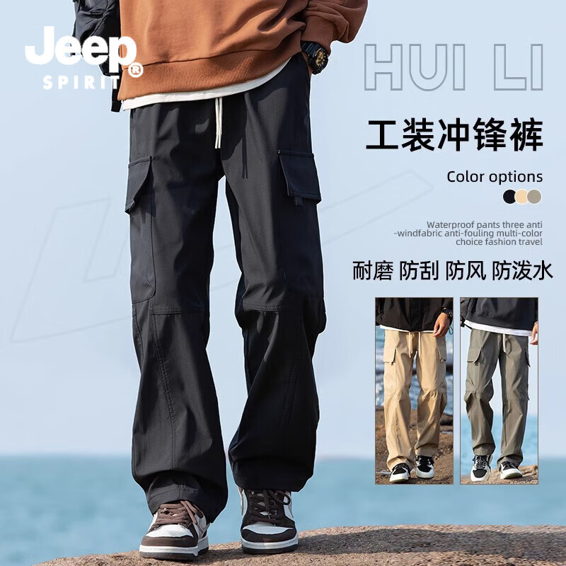 JEEP SPIRIT运动裤男春秋季美式高街潮牌工装裤男生防水防风宽松休闲长裤子 黑色 XL