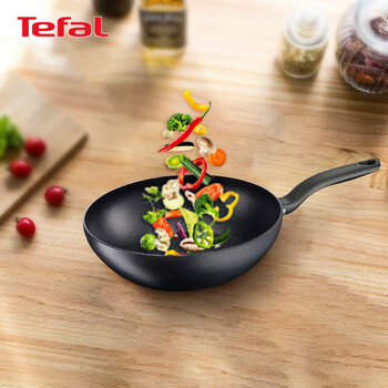 特福(Tefal)钛铸不粘锅炒锅电磁炉少油烟炒菜锅红点感温技术 28cm 健康养生