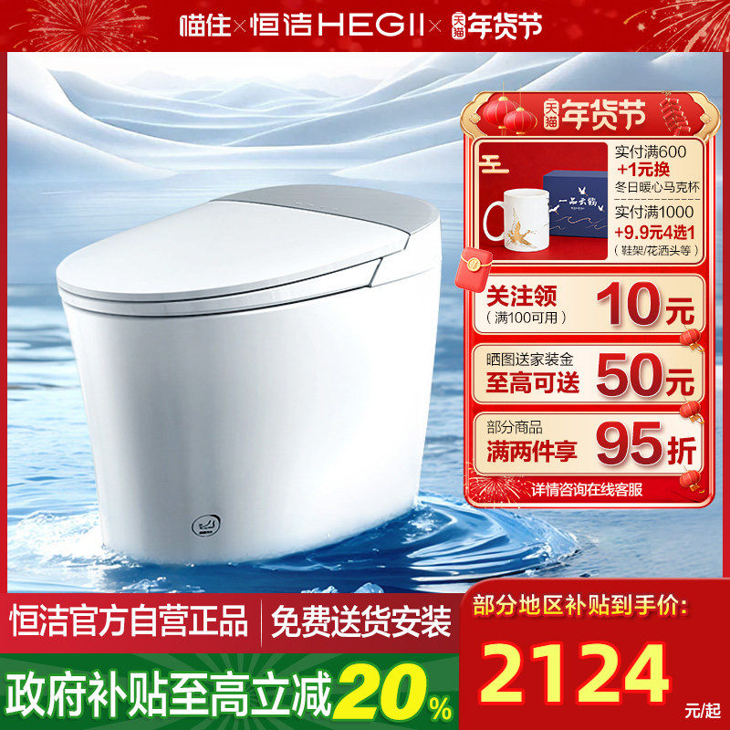 【政府补贴】恒洁智能马桶全自动家用零压翻盖H3脚感