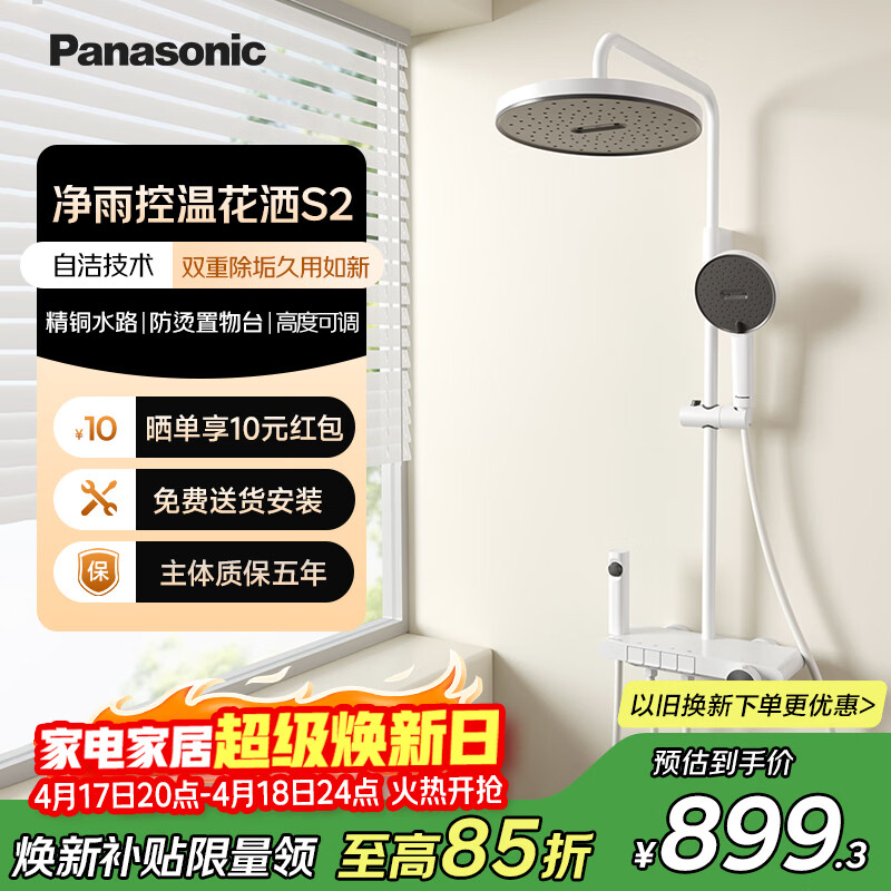 松下(Panasonic)冷热花洒套装 自洁除垢四功能控温淋浴器S2